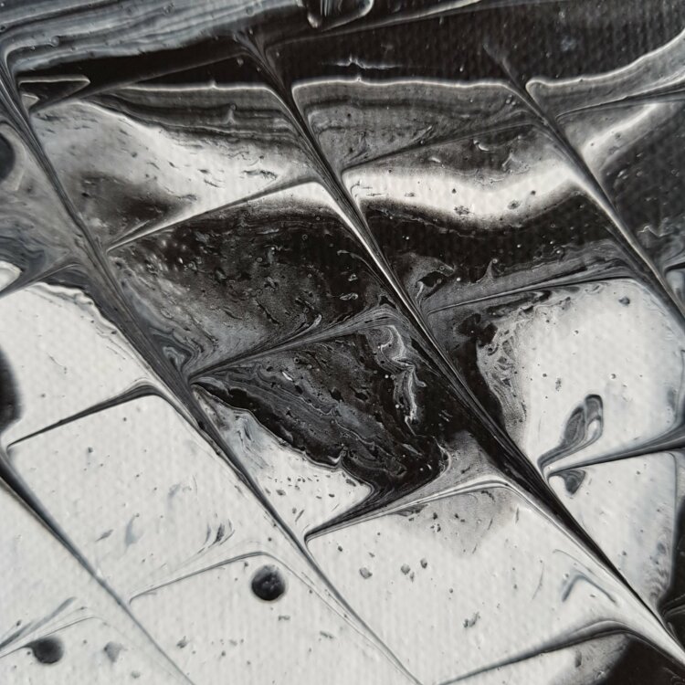 Réalisé avec la technique du pouring, ce tableau unique repose sur un savant mélange d’acrylique fluide qui laisse place à l’imprévisible. La superposition des couches et l’utilisation de tracés marqués créent une texture singulière, où le noir profond et le blanc éclatant s’équilibrent. Blackstar est peint sur une toile en coton de 30 x 30 cm, une taille idéale pour une pièce forte et expressive.