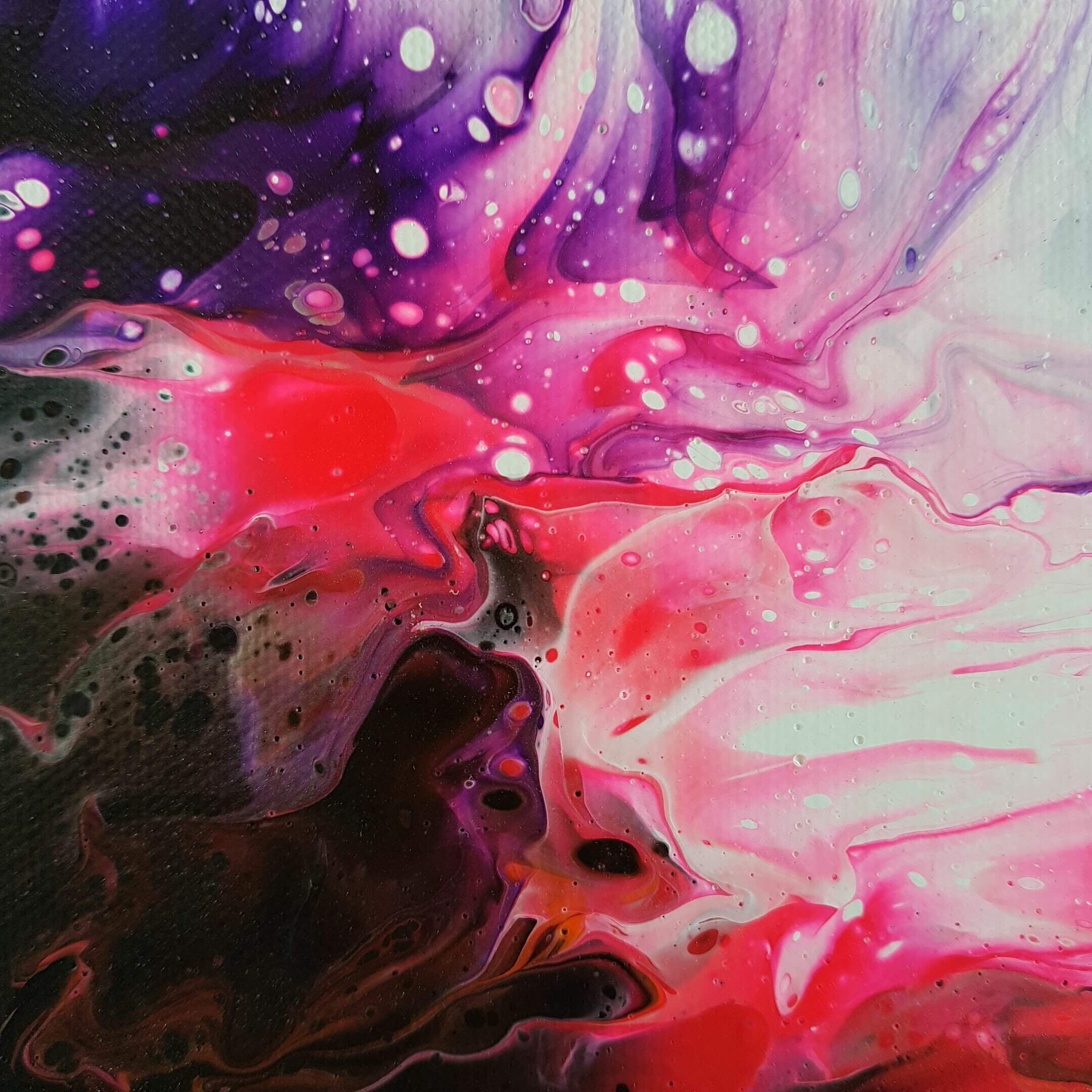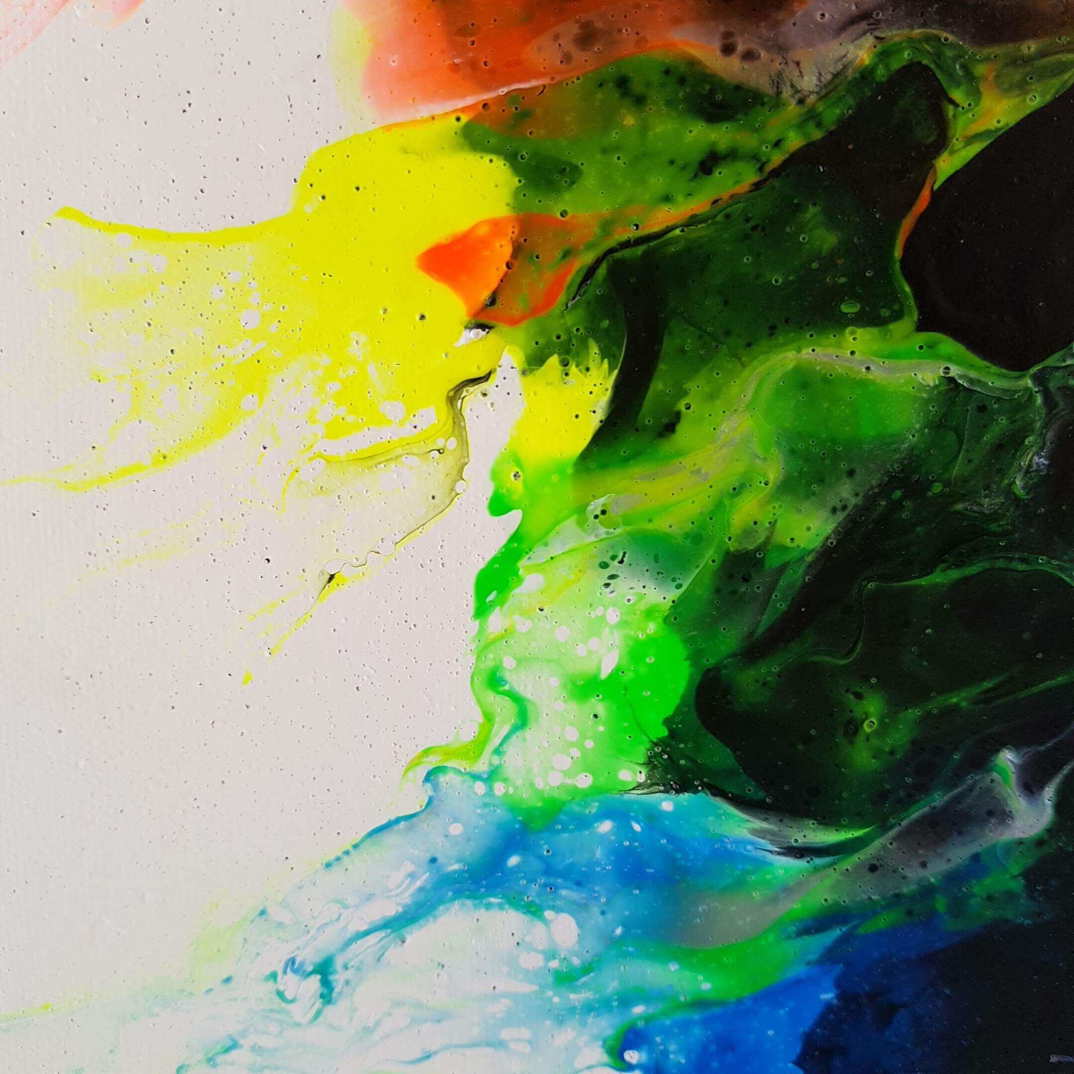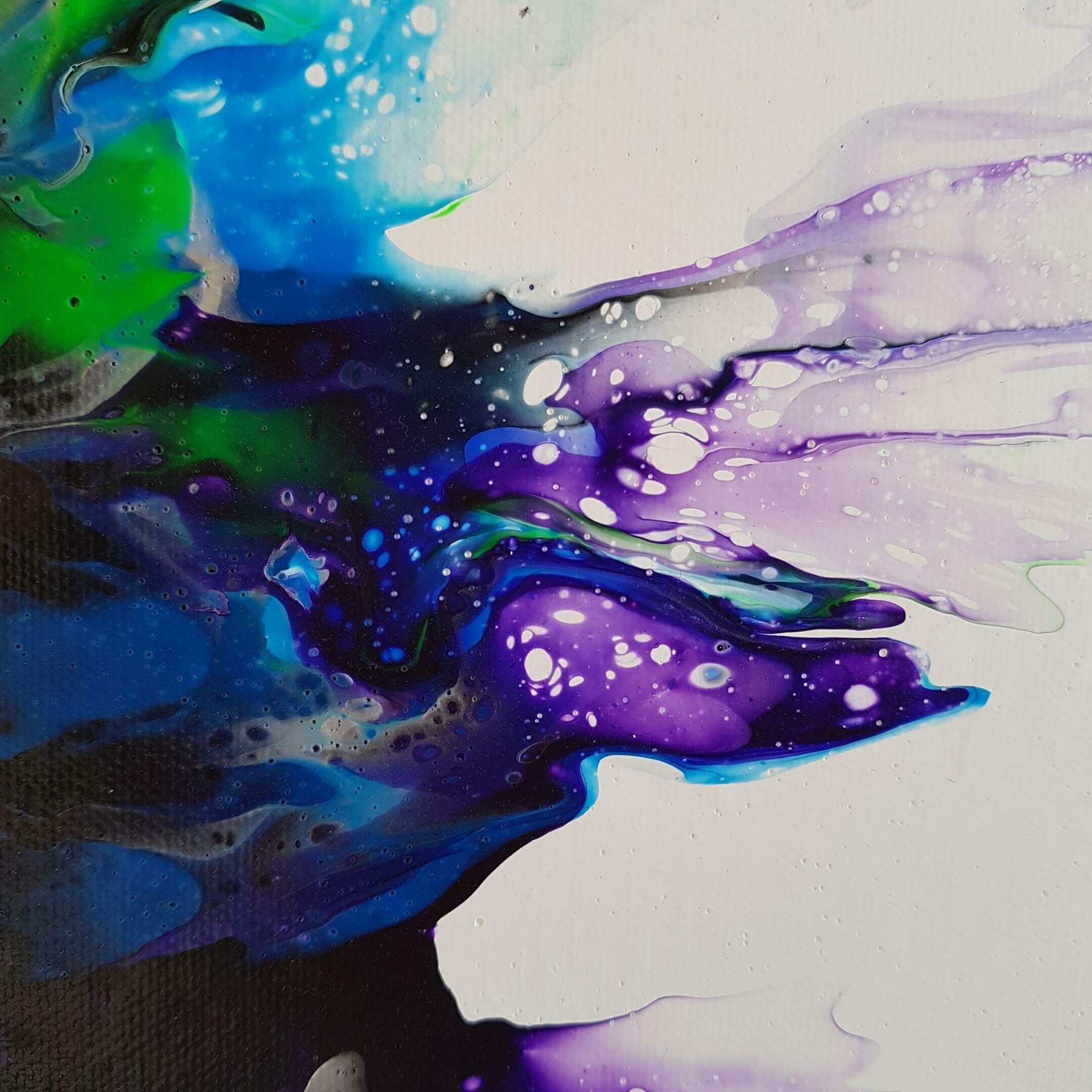 Créée à l’aide de la technique du pouring, cette pièce unique en peinture acrylique sur toile en coton tendue transporte les spectateurs dans un autre monde. Les couleurs fluos associées au noir et au blanc créent de profondes vibrations, tandis que la taille de cette peinture de 46 cm x 55 cm offre une multitude de possibilités d’exposition.
